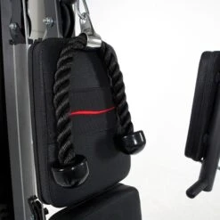 - 3 Zugeinrichtungen auf unterschiedlicher Höhe für Rudern, Bauchcrunches, Trizepsstrecken, Bizepscurls, Ad- und Abduktorentraining u. a.