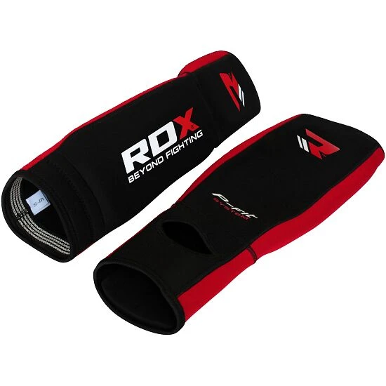 Die RDX Schienbeinschoner „NeoprenMarkenname für einen Chloropren-Kautschuk. Es ist besonders wärmeisolierend. Verwendung findet dieser Stoff z.B. bei der Herstellung von Schwimmanzügen und beim Automobilbau. Shin Instep“ schützen sowohl die Schienbeine, als auch die Fußrücken. Die vorgeformte ergonomische Passform passt sich jedem Bein bestens an. Die Grip-Technologie im Inneren bietet zudem besten Halt während des Kampfes. Die Pads sind sehr gut gepolstert, sodass die Beine optimal geschützt sind. Je nach Temperatur kühlen oder wärmen die Schienbeinschoner. Durch die offenen Bereiche hinter dem Knie ist eine gute Atmungsaktivität gewährleistet. Die NeoprenMarkenname für einen Chloropren-Kautschuk. Es ist besonders wärmeisolierend. Verwendung findet dieser Stoff z.B. bei der Herstellung von Schwimmanzügen und beim Automobilbau.-Konstruktion mit flachen Nähten sorgt für eine hohe Flexibilität und hohen Trainingskomfort.