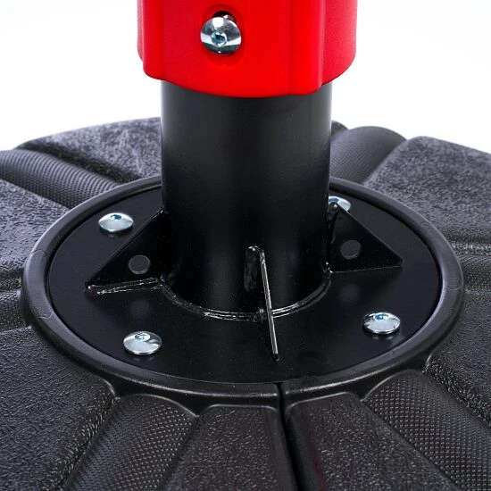 Der Sport-Thieme Standboxsack „Flex“ ist der ideale Standboxsack für das Boxtraining in Kampfsportschulen, Vereinen und das Fitnesstraining in Studios. Flexibel aufstellbar kann dort trainiert werden, wo Platz ist. Der robuste Standfuß aus Kunststoff ist mit Wasser oder Sand befüllbar. Dadurch erhält der Standboxsack eine solide Standfestigkeit und hält auch stärkeren Schlägen stand. Die zentrale Feder fängt die Schläge perfekt ab. Zudem sorgt sie für einen schnellen Rebound in alle Richtungen. Das schnellere Feedback des Polsters erhöht so die Schlagfrequenz und macht das Schlagkrafttraining noch intensiver.