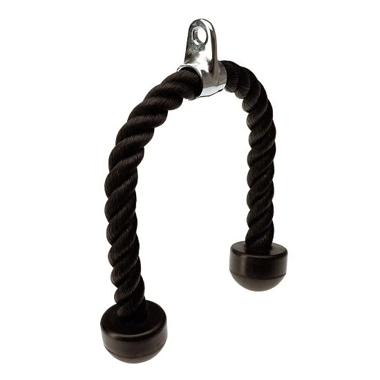Das Trizepsseil ist ideal für die Erweiterung Ihrer Kraftstation und ermöglicht eine noch größere Übungsvielfalt. Es sorgt für eine volle Kontraktion Ihrer Trizepsmuskeln. Gegenüber einem Metallgriff, bietet das Seil folgenden Vorteil: Sie können selbst den Griff bestimmen. Das NylonNylon ist der Markenname für eine spezielle Polyamid Faser. Je nach Verarbeitung unterscheidet man verschiedene Arten von Nylongewebe. Material-Vorteile: Sehr reißfest, elastisch, leicht, scheuerfest, wasserabweisend. Verwendung: z.B. Kompressionsbekleidung, Regenponchos, Zelte -Material und die gummierten Endstücke verhindern zudem ein Abrutschen der Hände vom Seil.